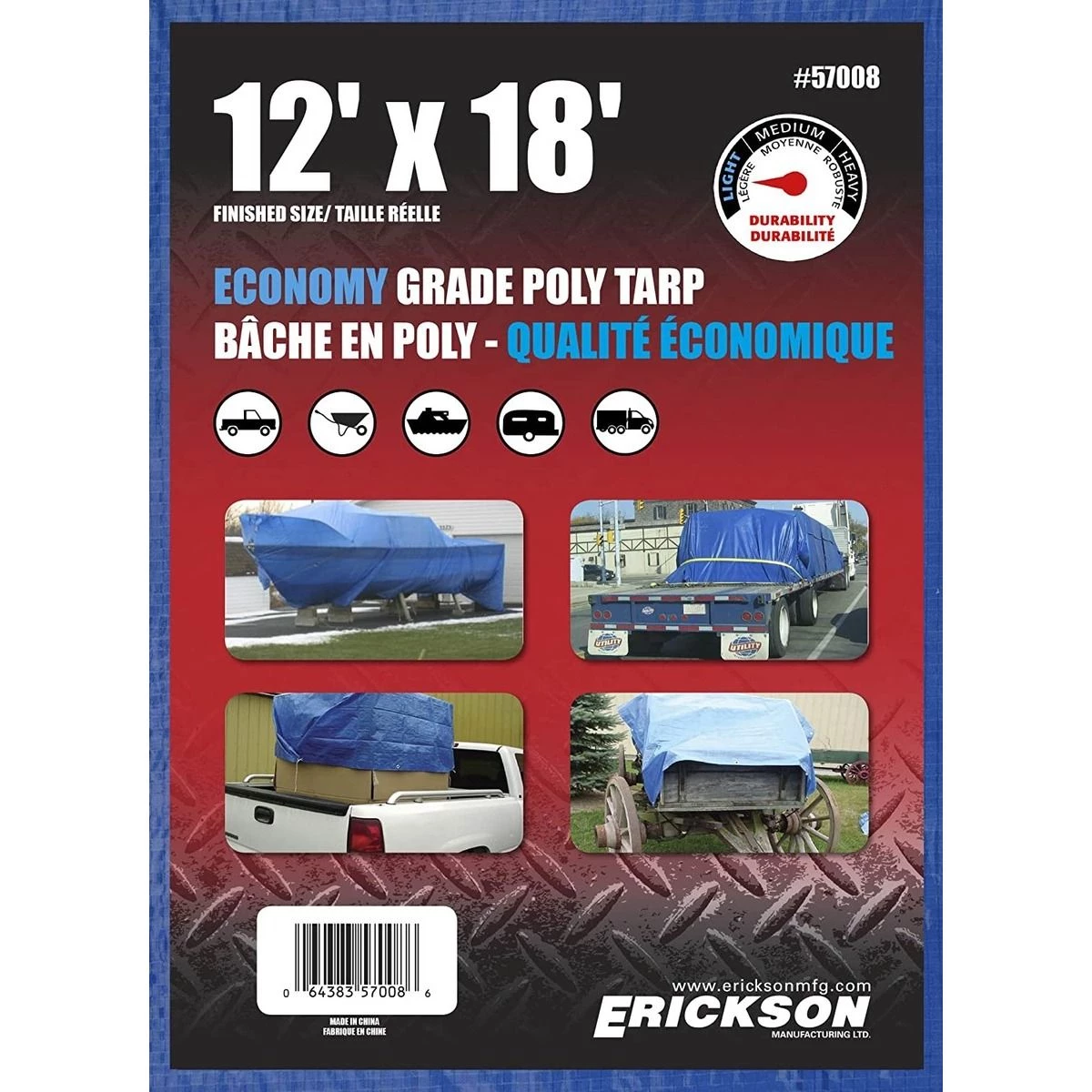 | Product Name | Erickson Economy Grade Poly Tarp, Blue, 57008, 12 FT x 18 FT |