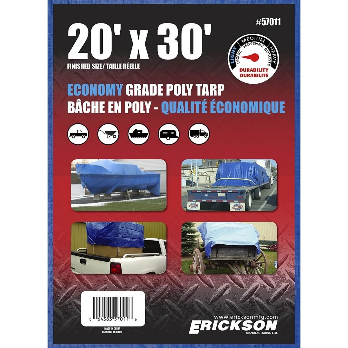 | Product Name | Erickson Economy Grade Poly Tarp, Blue, 57011, 20 FT x 30 FT |